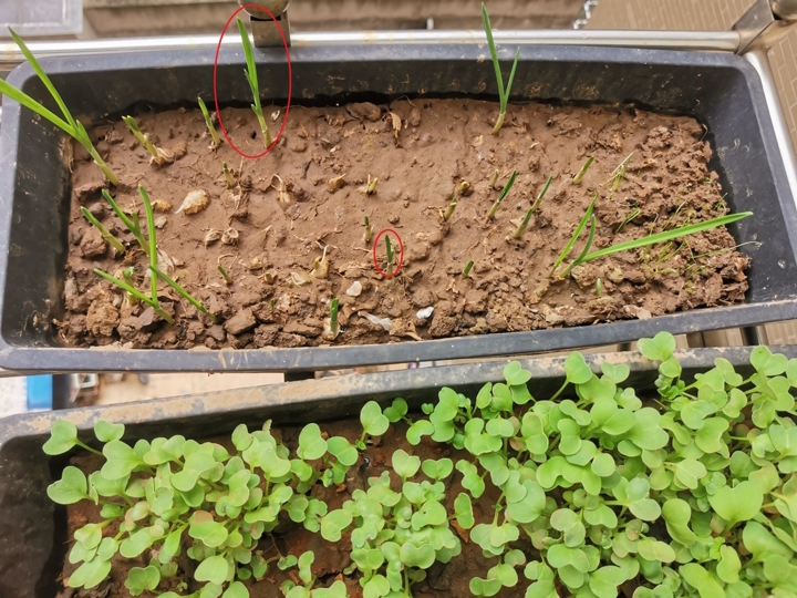 来,给你看看,这是我老婆在我家阳台种的大蒜,你看这个大蒜,我老婆给它们浇的是同样的水,它们在这里,也享受着同样的阳光,空气,雨露,但是有些呢就会长的快些,有些就会长的慢些。